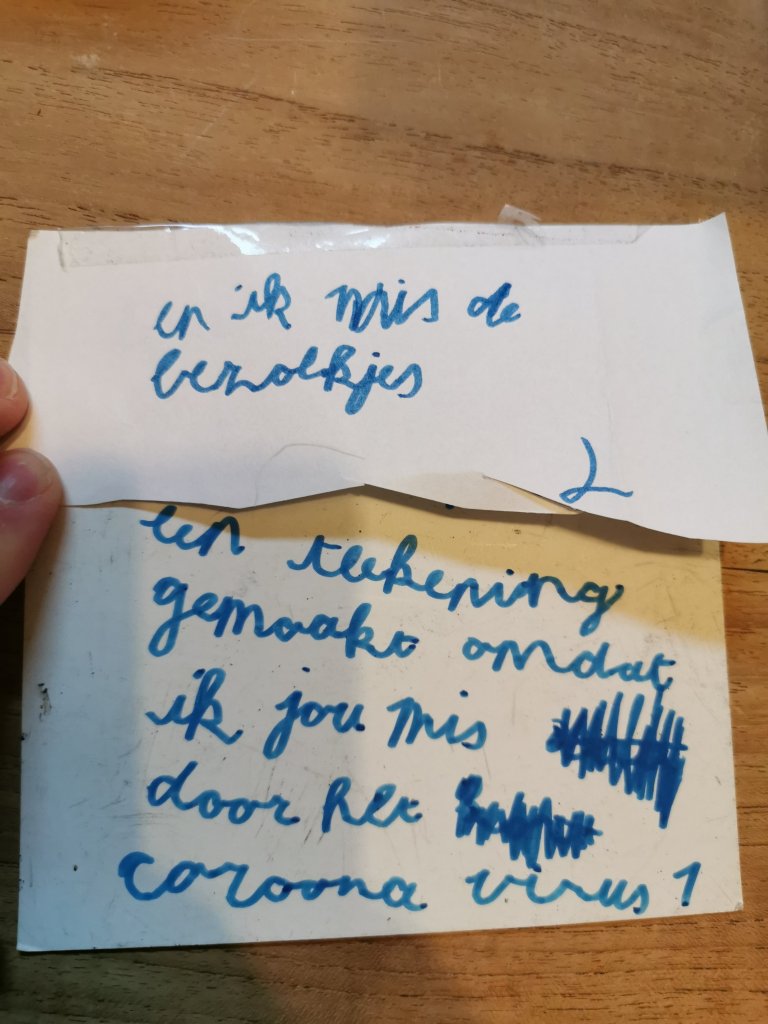 Sten vat een en ander goed samen in een briefje aan een van de grootouders: