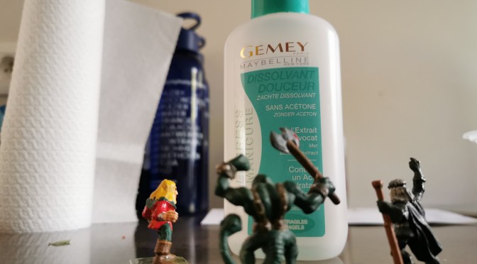 Neen, geen vreemd religieus tafereel. Deze 3 poppetjes werden door m’n broer geschilderd minstens 25 jaar geleden. Het was dan ook tijd om ze van hun laagje verf te ontdoen want, hoe knap ze ook waren toen, hun kleurenpalet past niet bij de rest van m’n collectie HeroQuestpoppetjes.