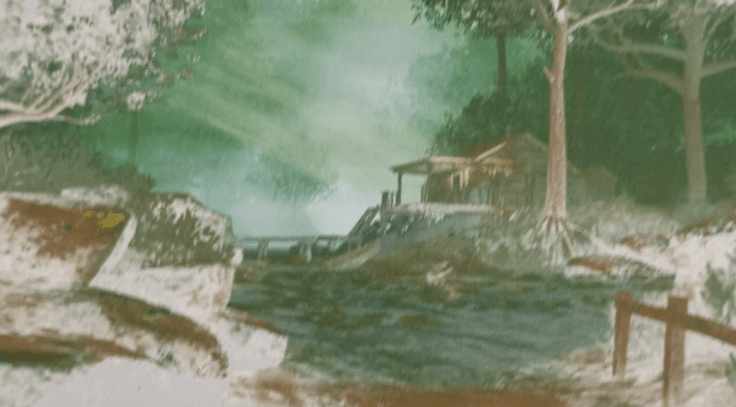 In bovenstaande idyllische tekening zou al het wit zwart moeten zijn…helaas besliste de printer dat puur zwart niet meer werkt.